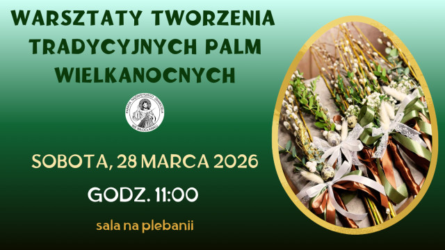 W sobotę 28.03.2026 r. w naszej parafii organizujemy po raz czwarty warsztaty tworzenia tradycyjnych palm wielkanocnych.